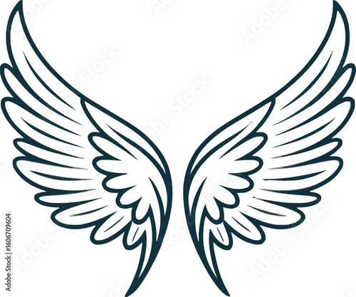 Fototapeta premium Elegant Dark-Line Art Wings: Freedom, Flight, and Spiritual Soaring Design