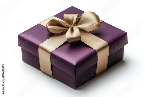© Nice Seven, Fototapeta premium Elegant Dark Purple Gift Box with Gold Ribbon on White Background for Creative Presentations and Celebrations