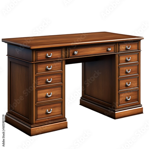 Fototapeta premium Elegant Dark Wood Executive Desk: Rich Mahogany Finish, Multiple Drawers,...
