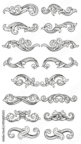 Fototapeta premium Elegant decorative floral scroll elements on black background