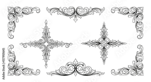 Fototapeta premium Elegant decorative flourishes and ornate corner accents for classic designs