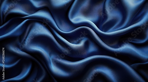 Obraz premium Elegant deep blue satin fabric draping softly, showcasing smooth textures and...