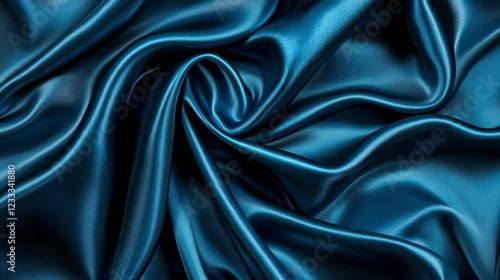 Obraz premium Elegant Deep Blue Satin Fabric Texture with Smooth Drapes and Folds