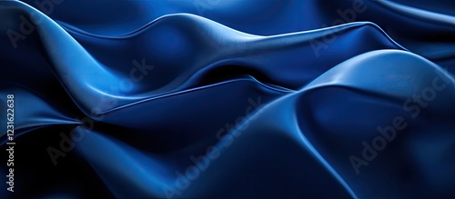 © Nijat, Obraz premium Elegant deep blue satin fabric with soft ripples and highlights, creating a rich textured backdrop perfect for design and creative projects.