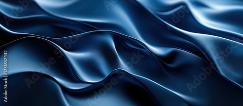 © Nijat, Obraz premium Elegant deep blue silk fabric with soft ripples and waves creating a luxurious and moody atmosphere, highlighting texture and flow dynamics.