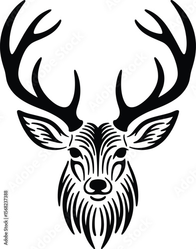 © Hridus, Naklejka premium Elegant Deer Head with Antlers in Black Silhouette Style