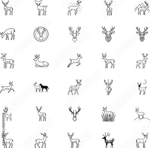 Naklejka premium Elegant Deer Line Art Icons Collection of Wild Animals