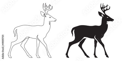Obraz premium Elegant deer line art silhouette – minimalist design for logos, digital art,...