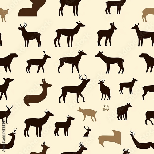 © background, Fototapeta premium Elegant Deer Silhouettes Seamless Pattern: Brown and Beige Wildlife Design