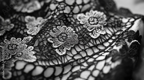 Obraz premium Elegant Detailed Black Lace Fabric with Floral Embroidery for Fashion and...