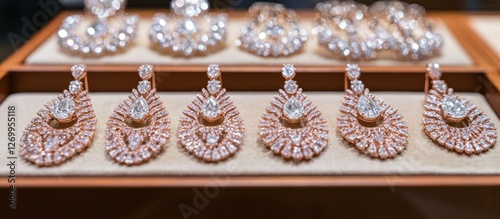 © @_ greta, Obraz premium Elegant Diamond Earrings Showcase in a Luxurious Jewelry Boutique