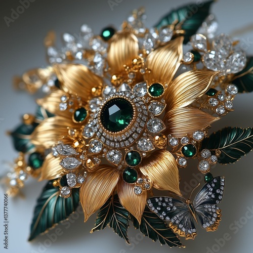 © Vadym, Naklejka premium Elegant Diamond-Studded Sunflower Brooch