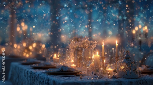 Fototapeta premium Elegant dining setup with glowing candles.