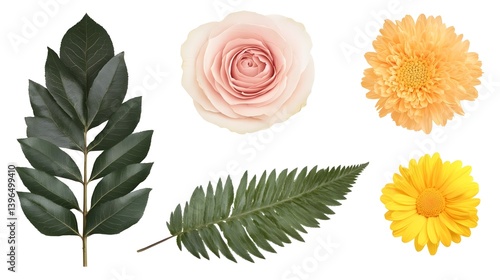 © STDG, Obraz premium Elegant Display of Four Flowers with Long Leaves on White Background