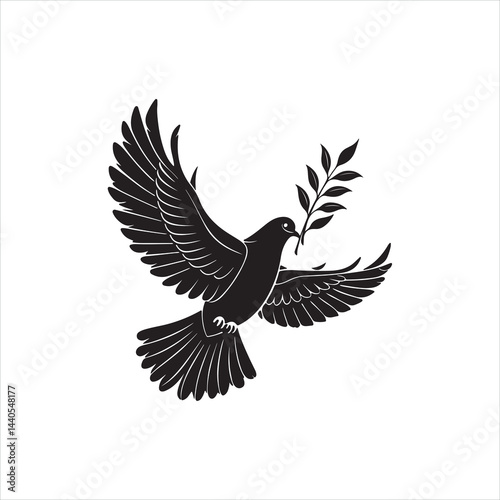 Fototapeta premium Elegant Dove Silhouette with Olive Branch Clip Art