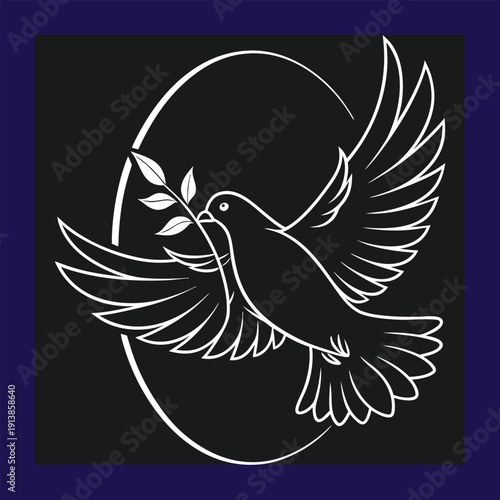 Obraz premium Elegant Dove Symbol With Olive Branch, Peaceful Flight Icon, Harmony Design...
