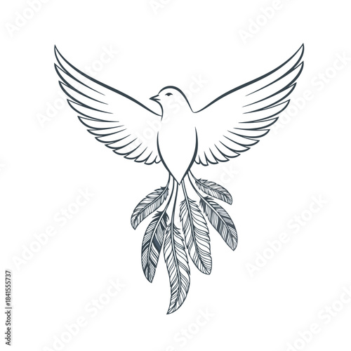 Fototapeta premium Elegant Dove with Feathered Tail, Stylized Art for Peace and Freedom Symbolism