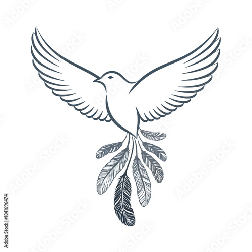 Fototapeta premium Elegant Dove with Flowing Feathers, Symbol of Peace and Freedom, Stylized Vector Art