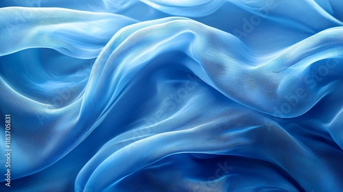 © WisChi, Fototapeta premium Elegant Draped Blue Silk Fabric Texture Soft Smooth Sheer Material Background