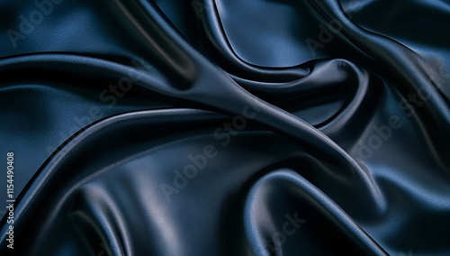 Fototapeta premium Elegant Draped Dark Blue Silk Fabric Texture Background