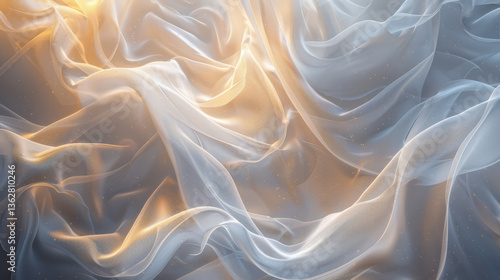 Obraz premium Elegant Draped Sheer Fabric Soft Gold and White Texture Luxurious Background