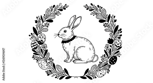 © Anggoro, Obraz premium Elegant Easter Bunny Wreath Design with Floral Accents