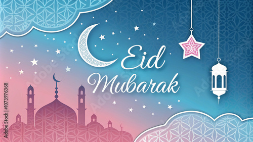 © Afsana, Naklejka premium elegant Eid Mubarak Islamic background with crescent moon