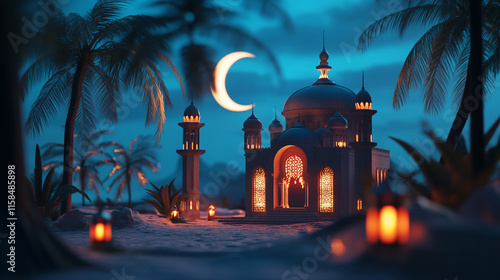 Fototapeta premium Elegant Eid Photo Background with Mosque Silhouette and Lights