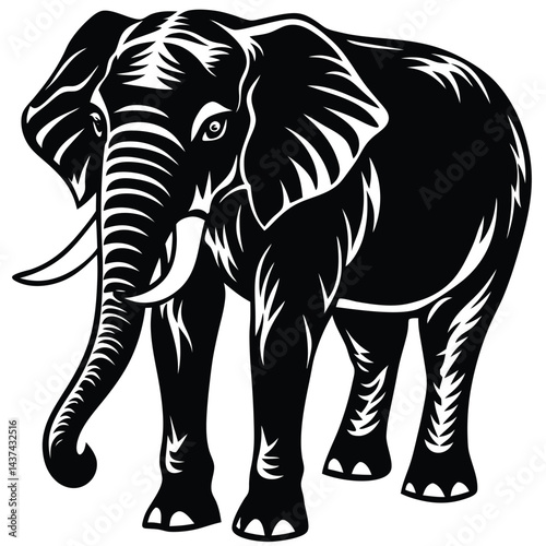 © Shipon, Fototapeta premium Elegant Elephant Silhouette With Night Sky Backdrop, Black and White Decorative Design