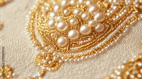 Obraz premium Elegant embroidery with golden threads and pearls for luxurious textile design