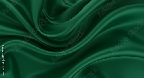 Obraz premium Elegant Emerald Abstract Dark Green Satin Fabric Draping with Soft Folds,...