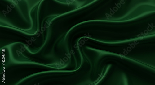 © Asahanku, Obraz premium Elegant emerald green fabric flows in graceful folds, creating a luxurious and visually appealing texture for backgrounds.
