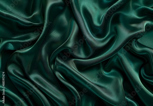 Fototapeta premium Elegant Emerald Green Silk Satin Fabric Background