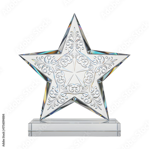 © fatema, Fototapeta premium Elegant Engraved Crystal Star Award Representing Achievement and Excellence