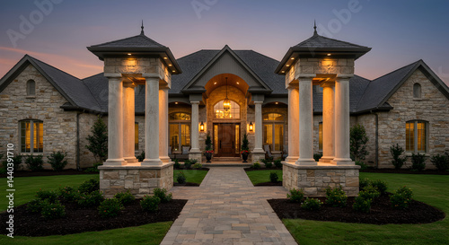 © IBEN, Naklejka premium Elegant Estate Exterior Offering Architectural Grandeur and Luxurious Details