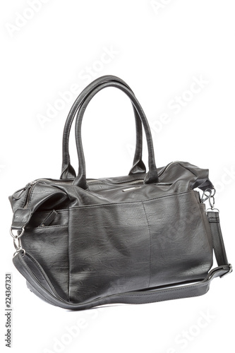 © trotzolga, Naklejka premium Elegant fashionable leather bag on white background