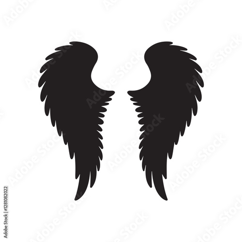 © AIcon Star, Fototapeta premium Elegant Feathered Wings Silhouette – Black Angel Wing Illustration