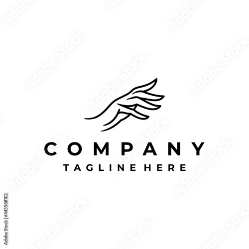 Obraz premium Elegant female hands in beautiful setting, Line art hand logo design vector illustration
