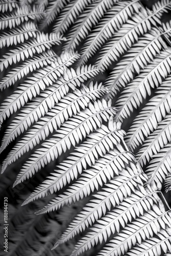 Fototapeta premium Elegant Fern Fronds Black and White Nature Texture Background
