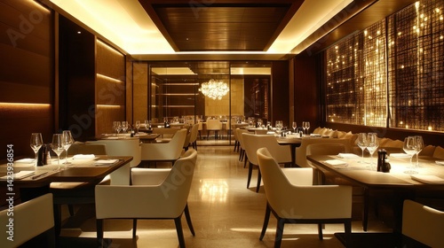 Obraz premium Elegant Fine Dining Restaurant Interior: Luxurious Ambiance and Exquisite Design