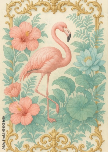 © Rawpixel.com, Naklejka premium Elegant flamingo amidst floral design.