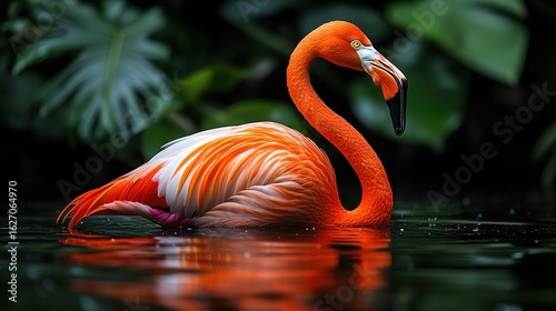 Fototapeta premium Elegant Flamingo in Serene Waters: A Portrait of Grace and Beauty