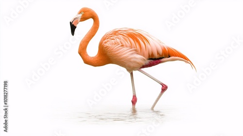 © Pojjanee, Obraz premium Elegant Flamingo Standing in Shallow Water