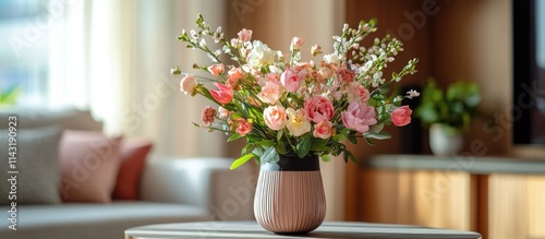 Fototapeta premium Elegant floral arrangement in a stylish vase creating a warm and inviting atmosphere in contemporary home décor