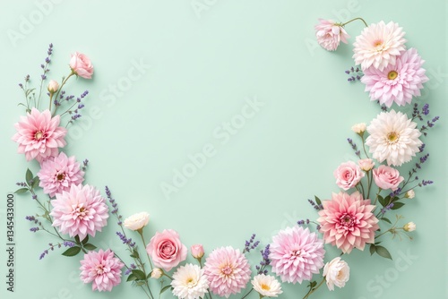Obraz premium Elegant floral arrangement with pink and white flowers on pastel green...