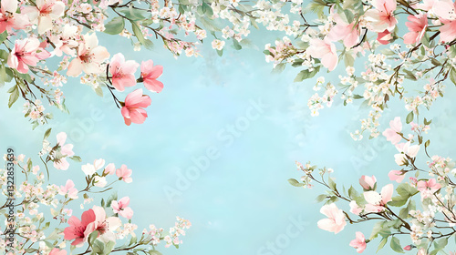 Fototapeta premium Elegant Floral Background with Soft Blue and Pink Petals and Leaves