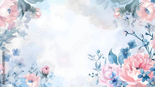 Obraz premium Elegant Floral Border with Delicate Watercolor Peonies and Forget Me Nots