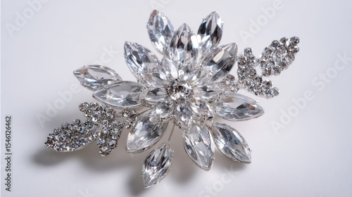 © Artittaya, Fototapeta premium Elegant floral brooch with crystal petals placed on a smooth white background