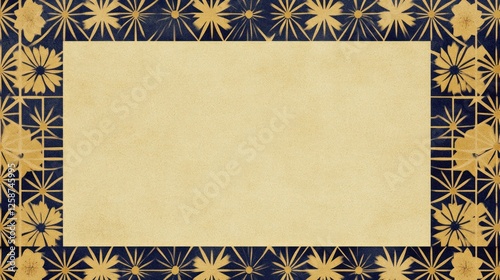 © Matoya, Obraz premium Elegant Floral Frame Beige Background Navy Blue Gold Flowers