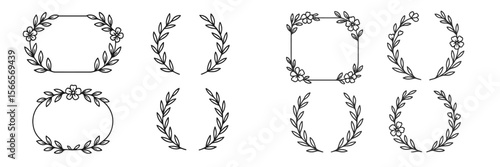 Naklejka premium Elegant floral frame designs for invitations, cards, and decorations in black and white illustrations